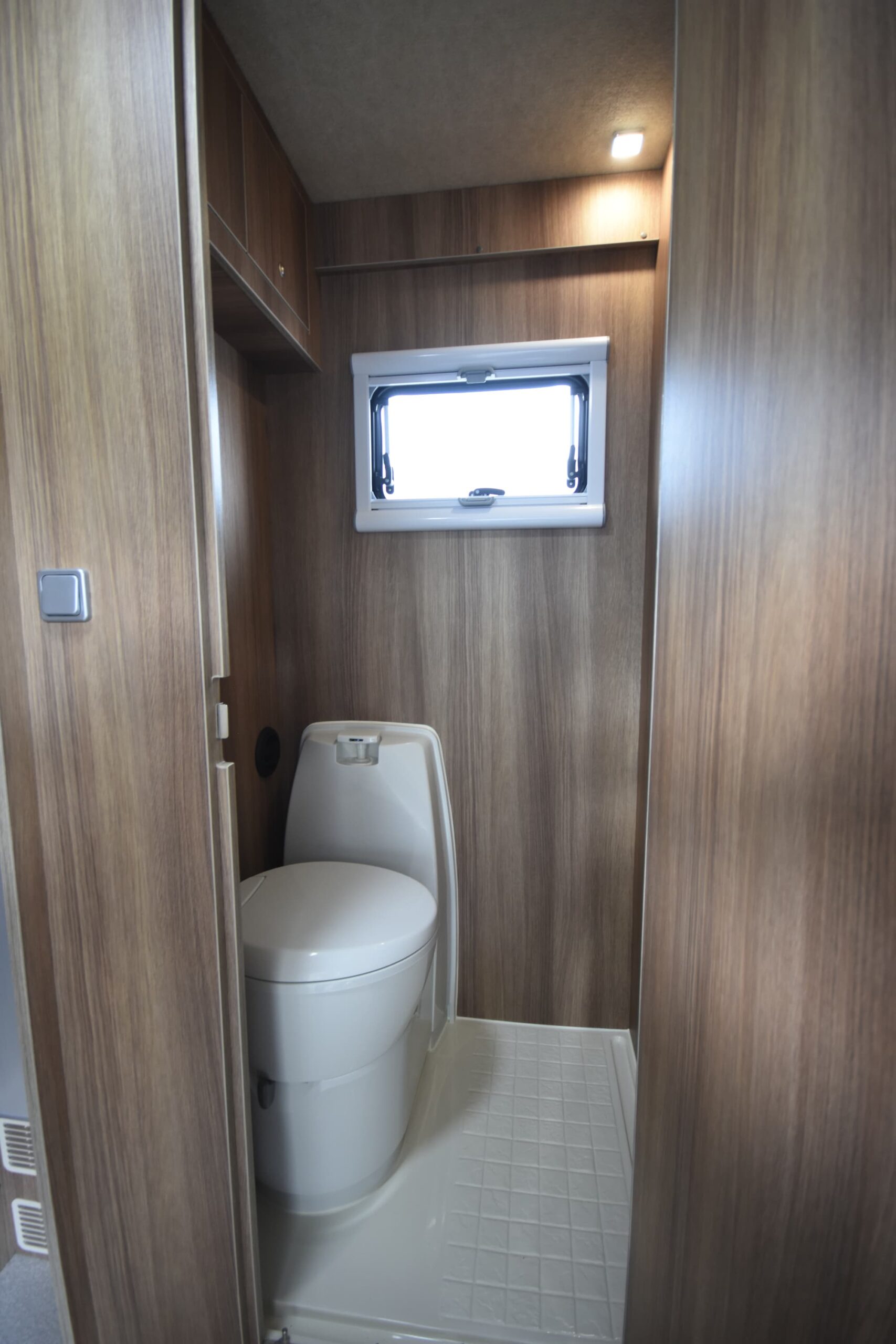 ベース車となるカムロードのディーゼル車が3.5トンになったことにに伴い、乗車定員が変更になっています(ガソリン6名/ディーゼル8名)。また、定員確保のため、カウンターテーブルの一部を脱着構造に変更しています。変更の多かったカセットトイレは標準装備から外し、オプションとして提供しています。